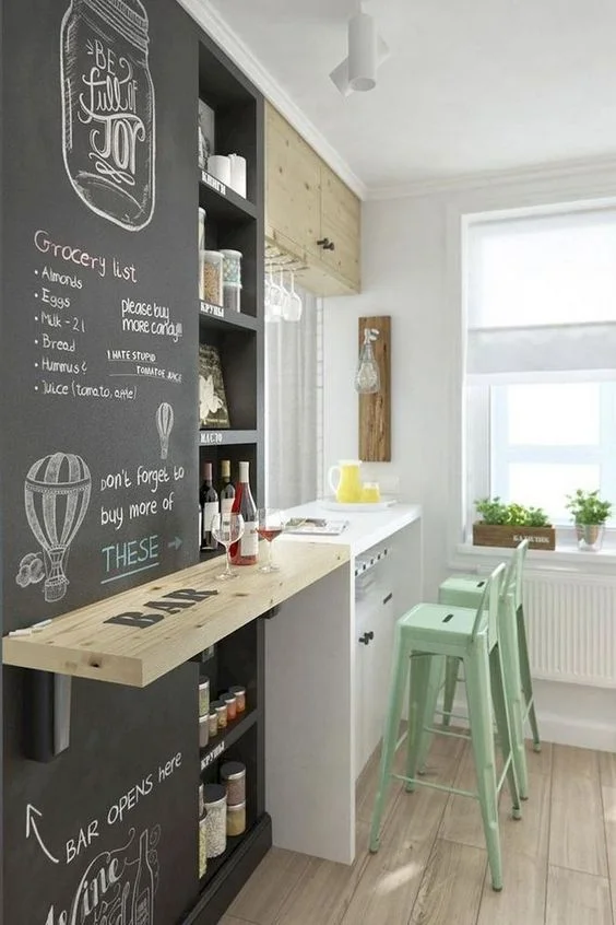 Diy a coffee station to fit any space in your kitchen, no matter how small. Consider adding a pop of color to your small kitchen bar to show your personal style and invite people in. You too can dream big for your small spaces to serve many purposes like preparing meals, dining, or drafting emails. This will free up the small living room decor space below your counters and allow you to set up a small bar area without taking up any additional room. You don't need a lot of square footage to fit a home bar into your plans.